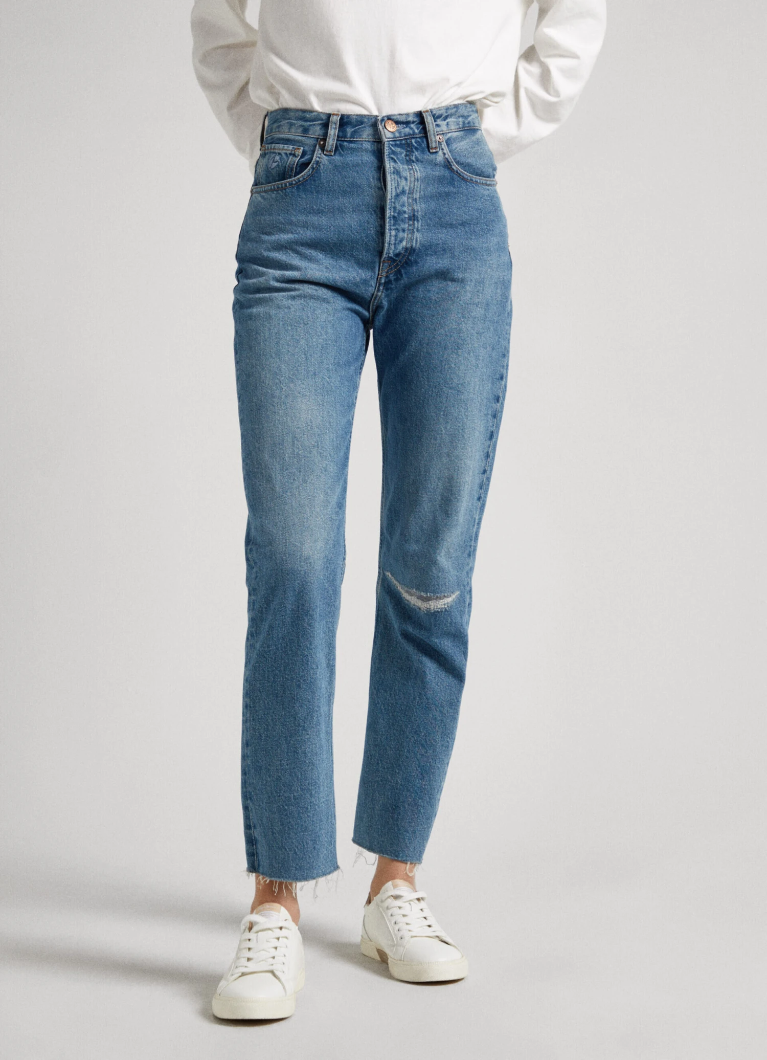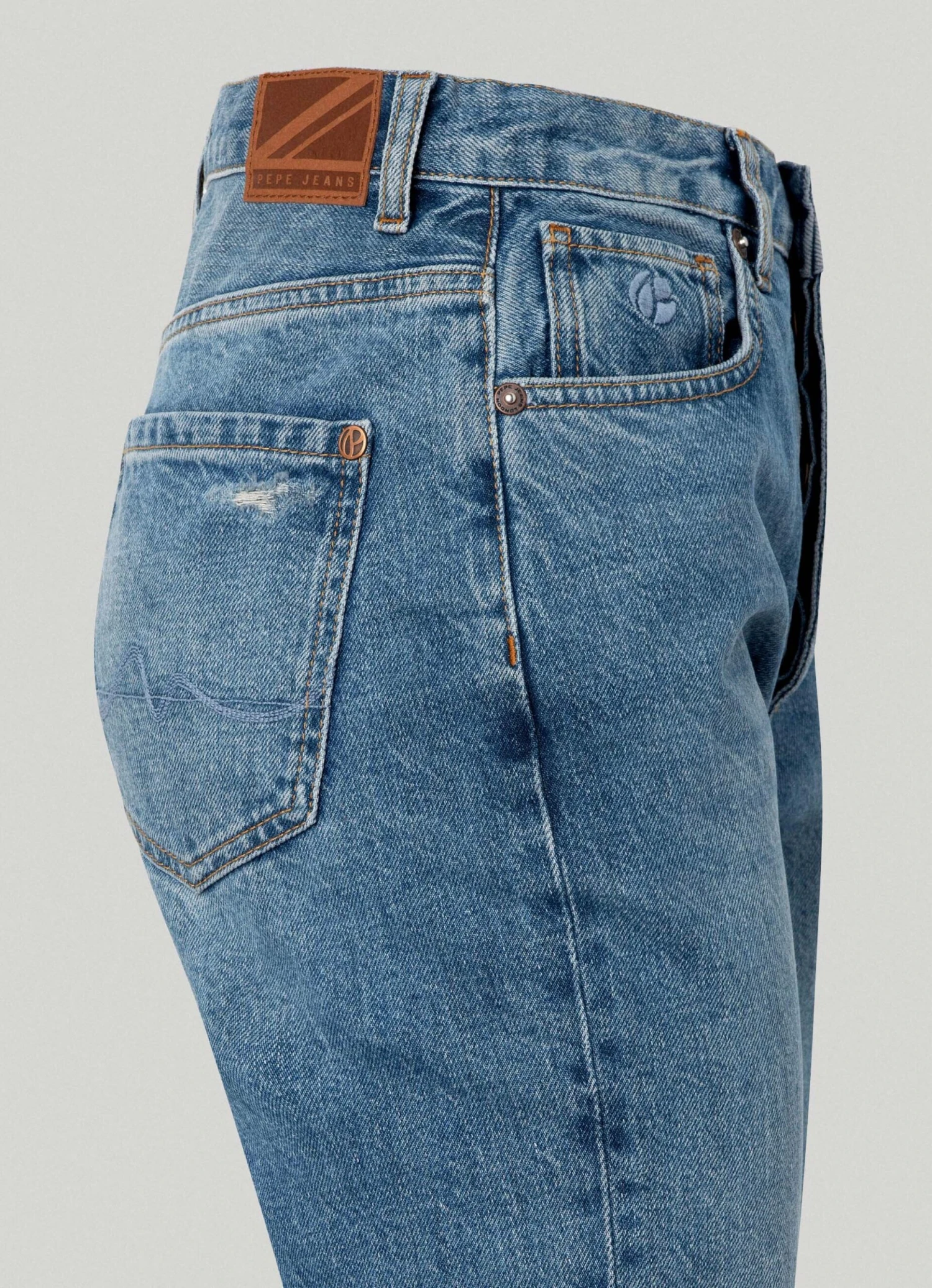 Re_claim denim contains at least 98% recycled cotton and polyester. It is washed with minimal water, energy, and chemicals for a green EIM score. Stitching and pocket interiors made with recycled plastics. Buttons and rivets finished with minimal resources and chemicals. Biodegradable brand patch made 100% from mushrooms.