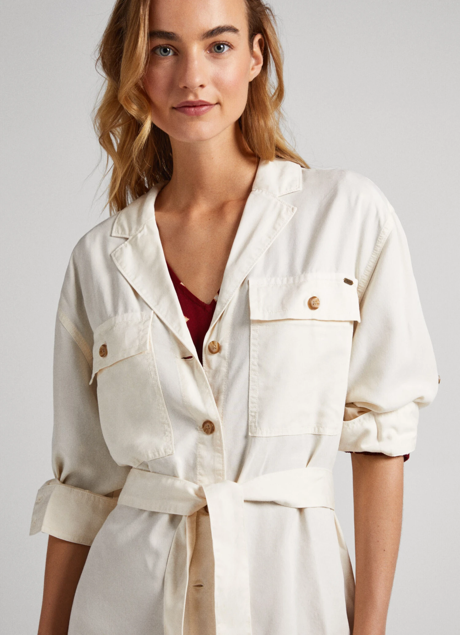 – Belt detail in the same fabric at the waist