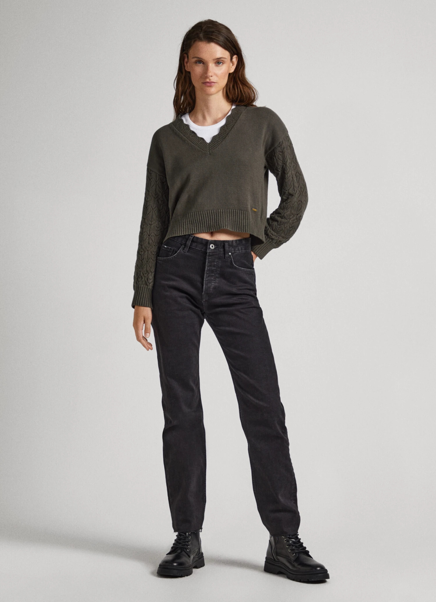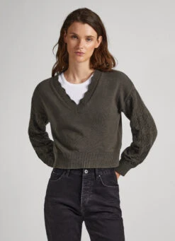 – V-neck with openwork details on the edges