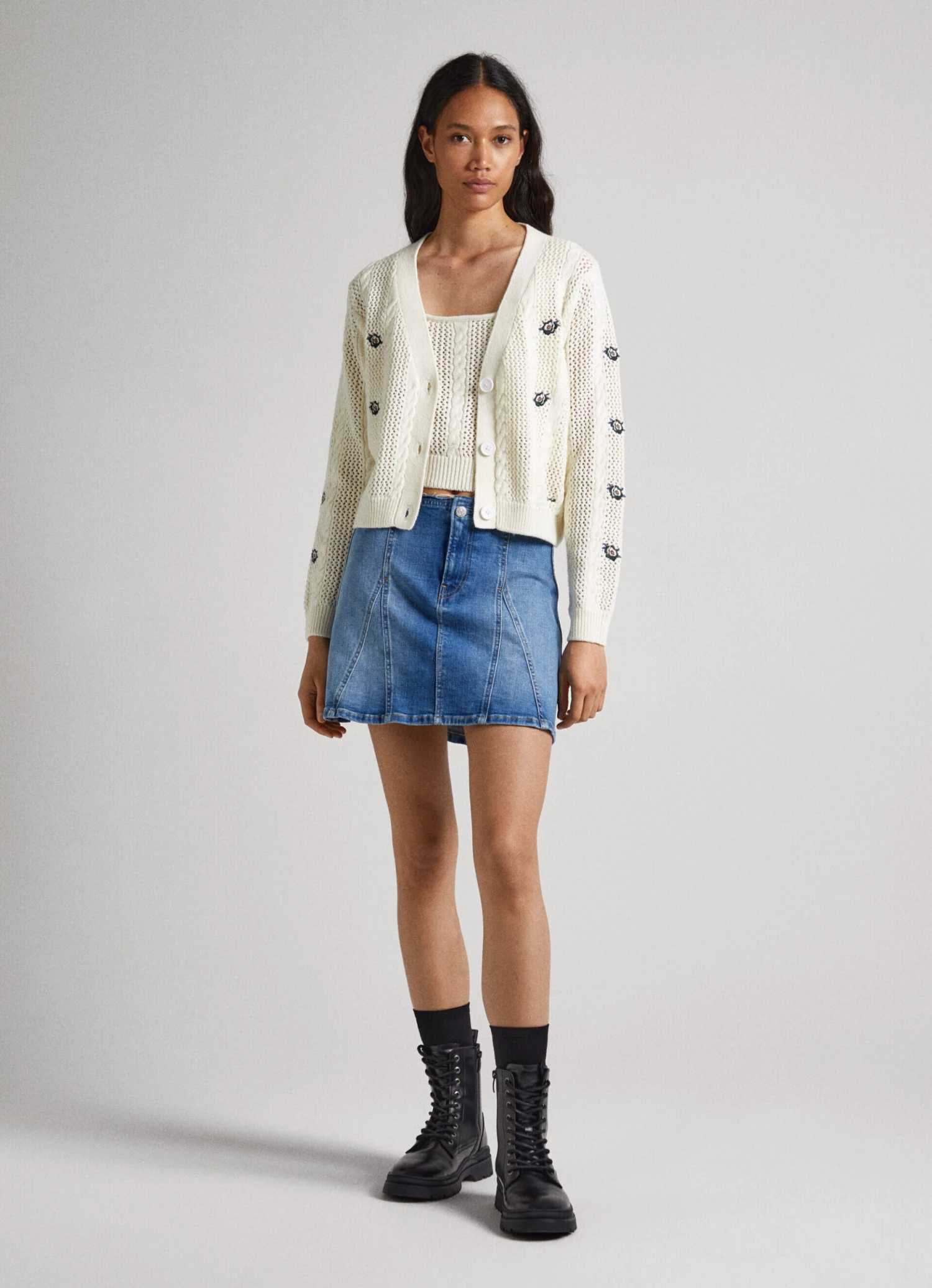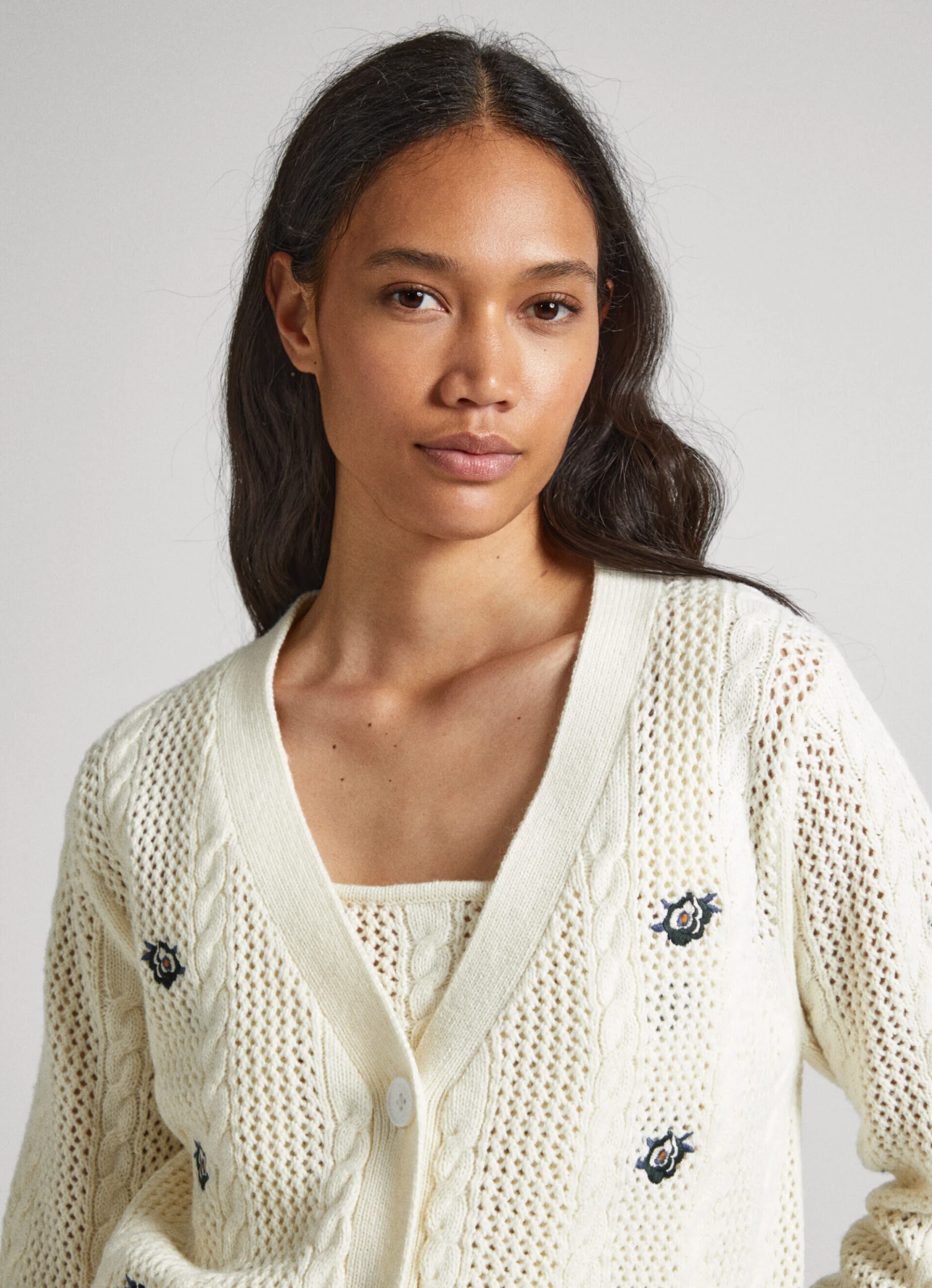 – Cable knit cardigan