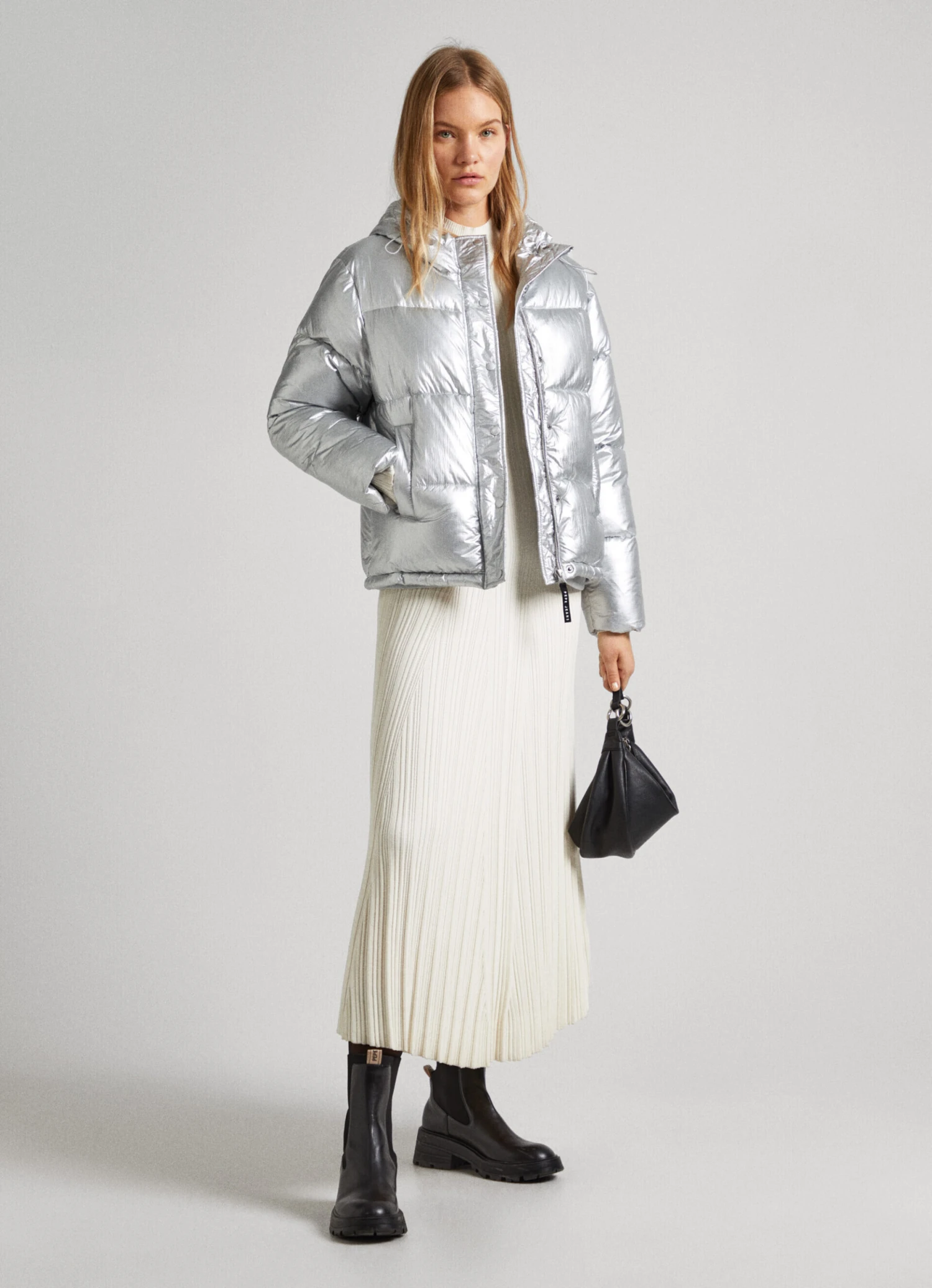 – Water-resistant fabric in silver